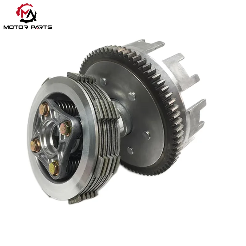 Polad-alüminium ərintisi və yüksək keyfiyyətli kağız əsaslı sürtünmə disklərindən hazırlanmış mufta qurğusu sabit sürtünmə əmsalı, yüksək dəqiqlikli emal və orijinal fabrikə uyğun nominal fırlanma momentinə malikdir. O, Jialing CG125, CG150 və ciddi OEM standartlarına malik digər sümükaltı motosikletlərə uyğun gəlir.
