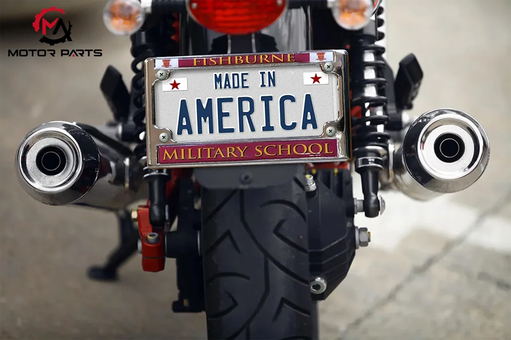 Max Trading tərəfindən istehsal edilən ABŞ Standart ABS Motosiklet Lisenziyasının Çərçivəsi nömrənin nömrə sahəsinə maneçilik törətmədən kənarında ən azı 5 mm-lik marja ilə "Motorlu Nəqliyyat Vasitəsinin Lisenziya Nömrələri üçün Quraşdırma Spesifikasiyasına" ciddi şəkildə əməl edir. O, dörd nöqtəli vidalı kilidləmə strukturunu qəbul edir və pedalların, tramvayların və retro modellərin 99%-i üçün uyğundur. Eyni zamanda, Max Trading-in motosiklet nömrə nişanı çərçivəsi yüksək səviyyəli motosiklet modifikasiyası bazarının fərdi ehtiyaclarına dəqiq cavab verən LED işıq yuvası interfeysi dizaynı və ağıllı gecə vaxtı köməkçi işıqlandırma sistemi ilə təchiz oluna bilər.
